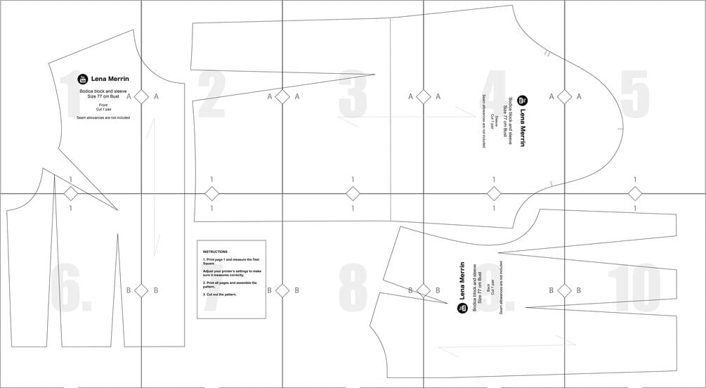 Bunka bodice and sleeve block (77 cm Bust) PDF